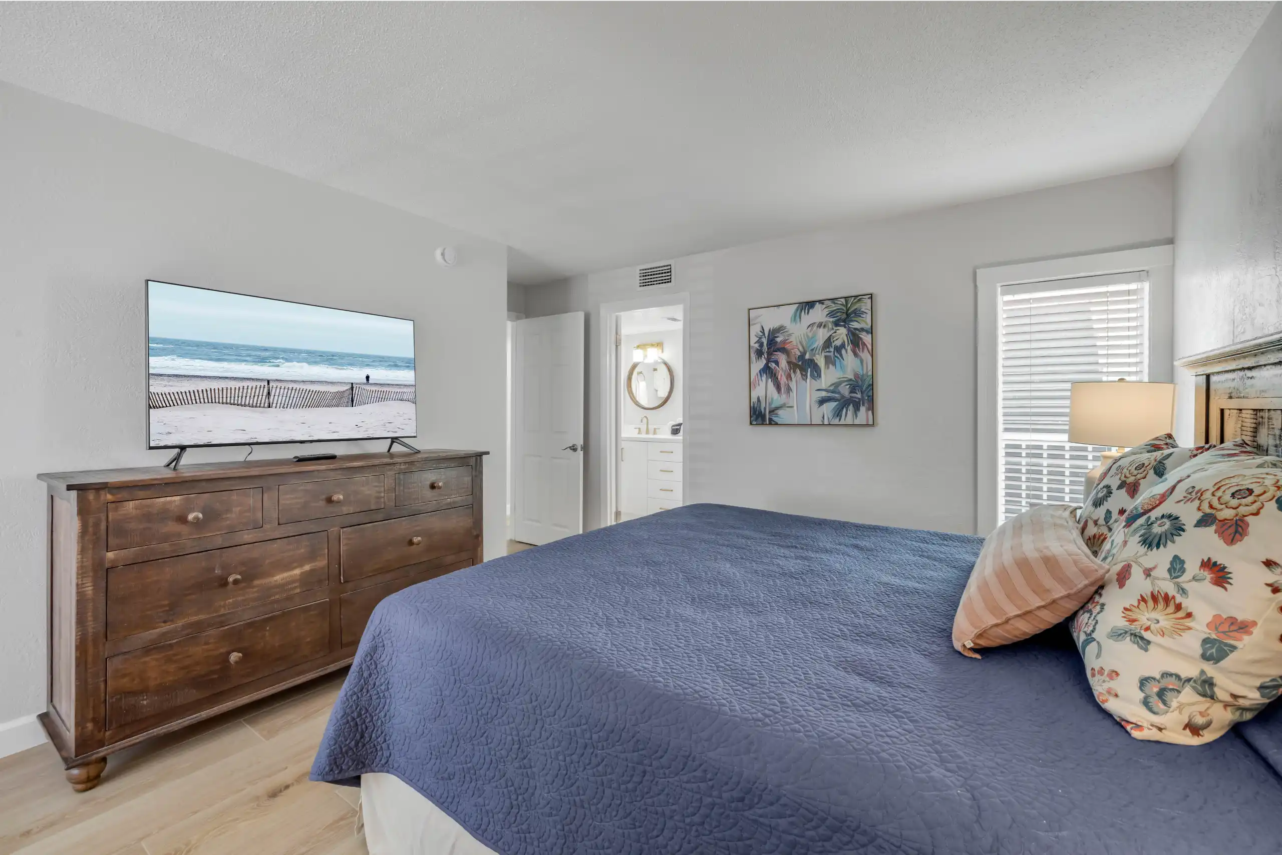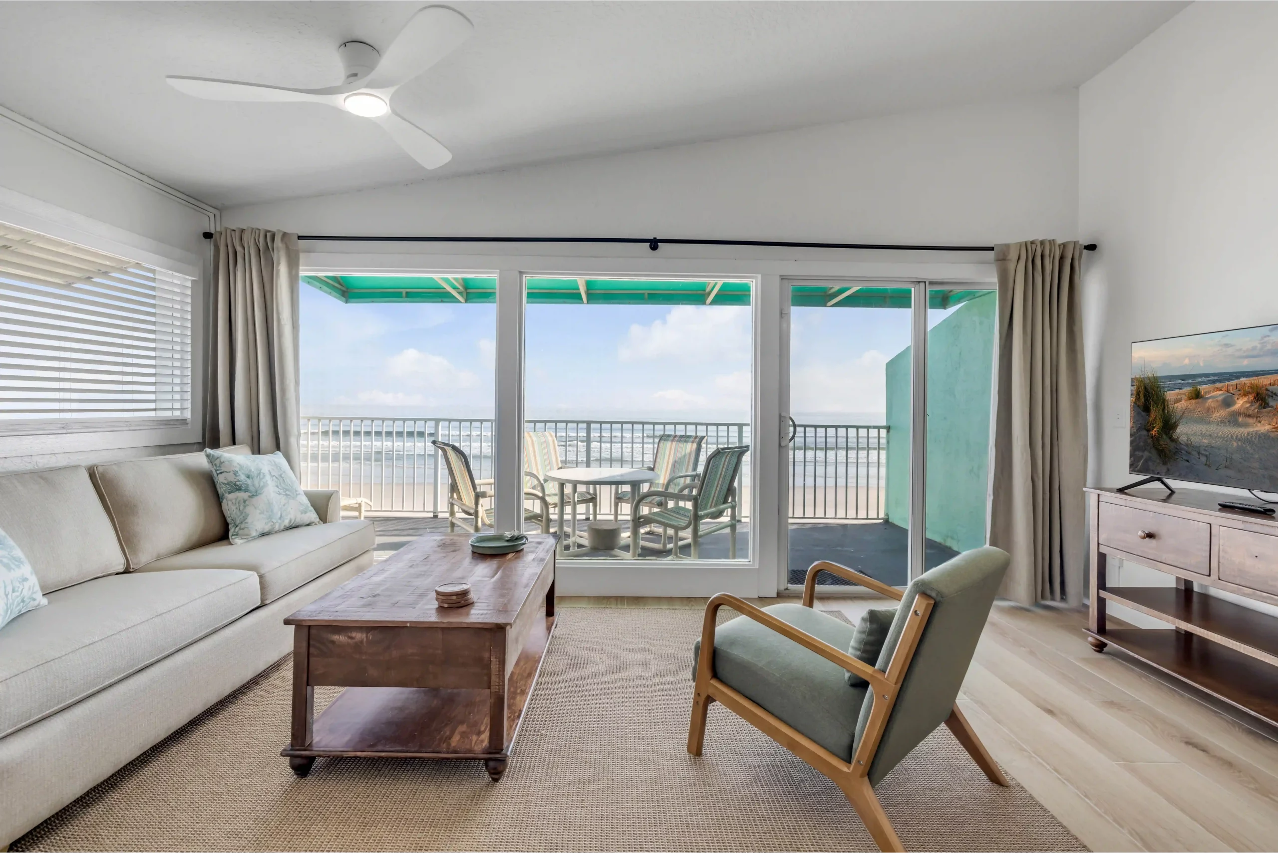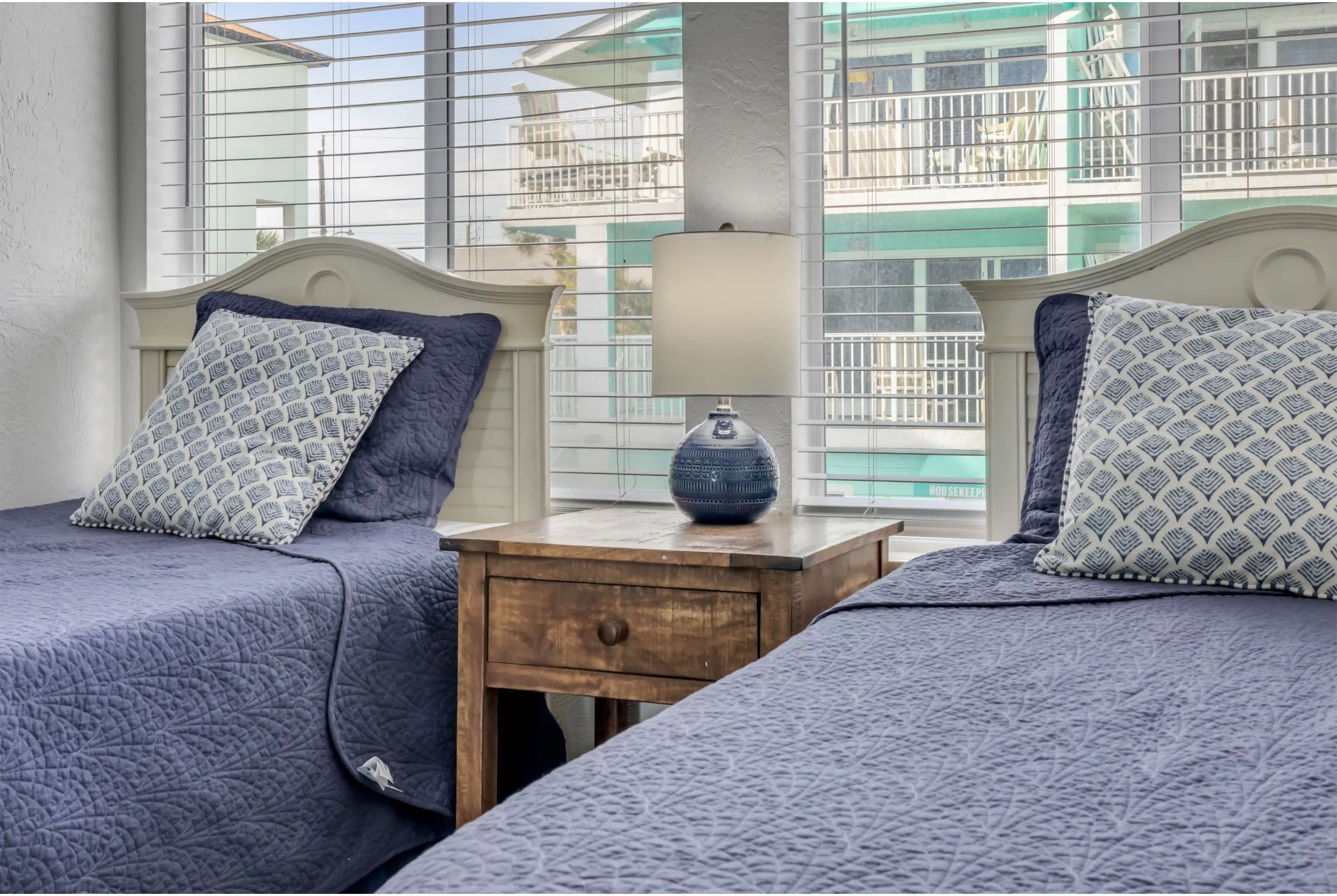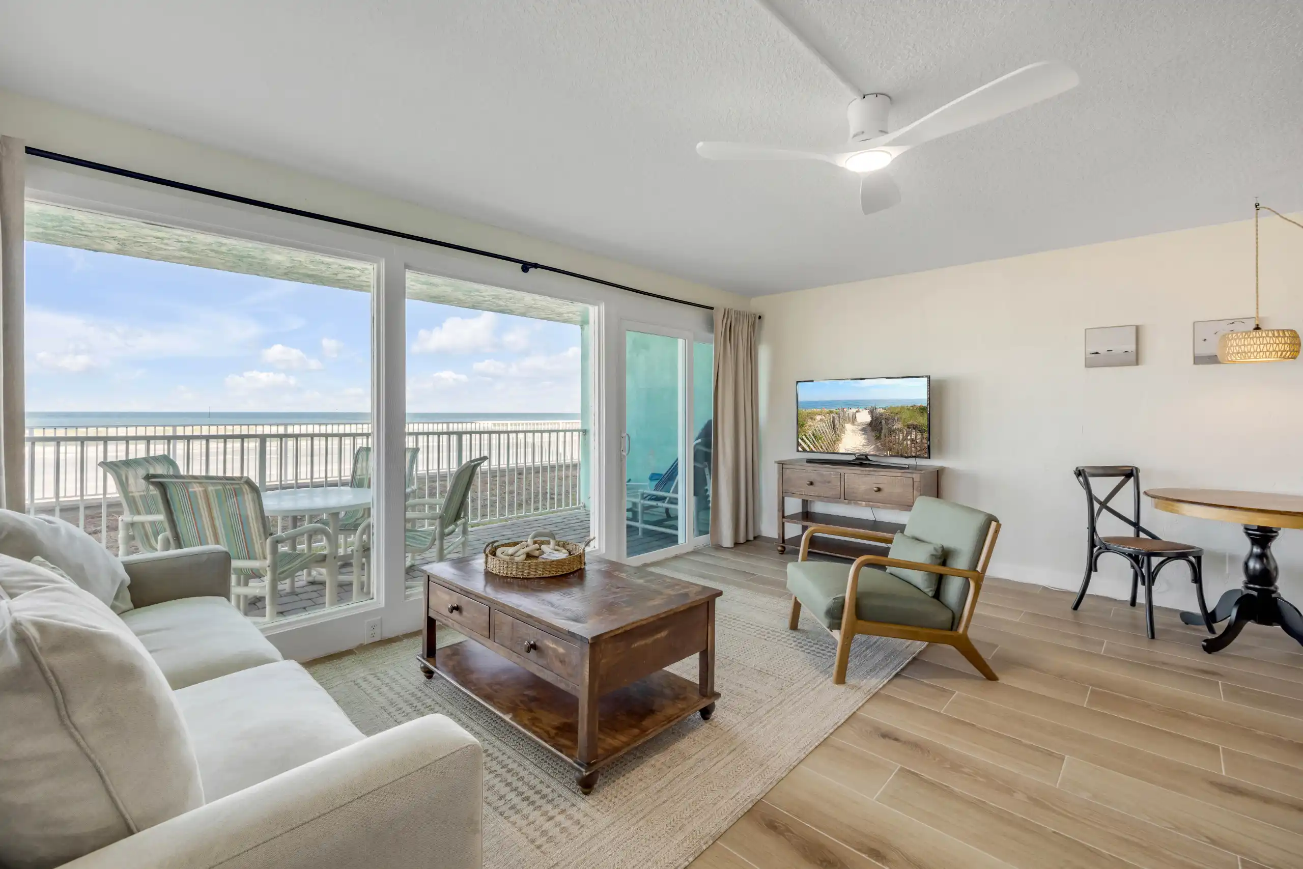 Ideal for families or groups, our two-bedroom condos offer plenty of space and all the comforts of home. Enjoy an in-unit washer and dryer, a fully equipped kitchen, and beautiful views of the Atlantic Ocean.